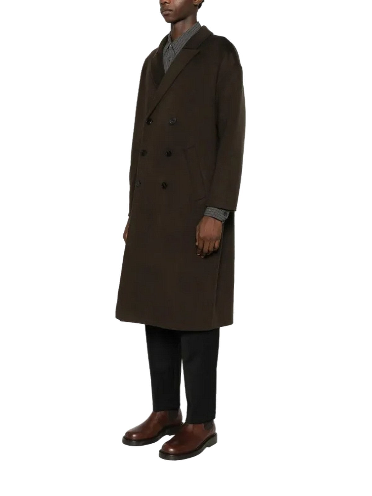 Il cappotto doppiopetto in misto lana presenta revers classici e chiusura frontale con abbottonatura, per un design elegante e senza tempo.Le tasche laterali a filetto aggiungono un dettaglio funzionale e raffinato.Le maniche lunghe completano la linea pulita del capo, pensato per offrire calore e comfort nelle giornate più fredde.La composizione in lana e cashmere garantisce morbidezza e qualità superiore.